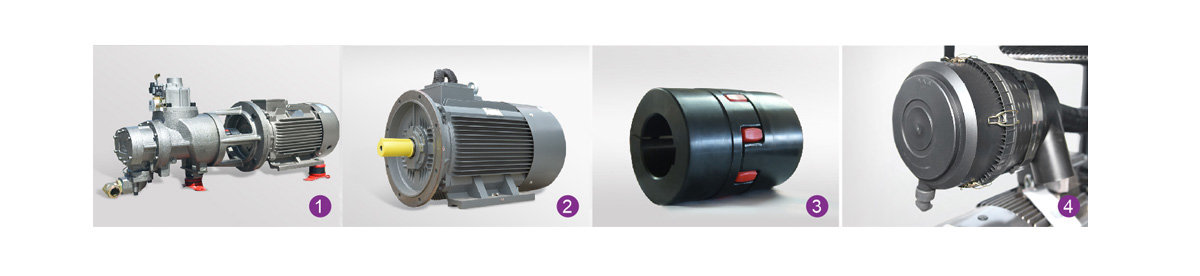 螺桿機(jī)頭與異步電機(jī)通過(guò)彈性聯(lián)軸器聯(lián)結(jié),安裝簡(jiǎn)單,兩者聯(lián)結(jié)的梅花膠墊片可以有效的降低機(jī)頭與電機(jī)之間傳動(dòng)的震動(dòng)。