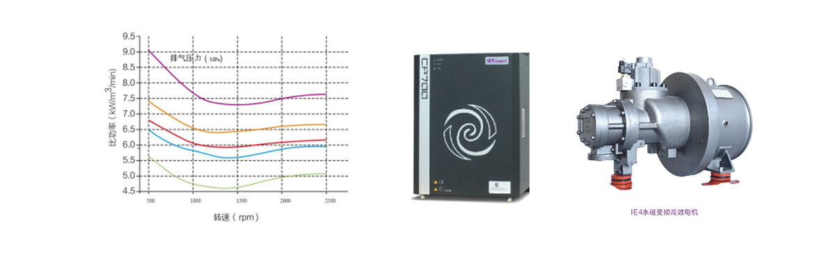 永磁變頻空壓機(jī)中低轉(zhuǎn)速的螺桿轉(zhuǎn)子選型:在對(duì)螺桿轉(zhuǎn)子的長(zhǎng)期測(cè)試跟研究中,我們發(fā)現(xiàn):螺桿轉(zhuǎn)子的比功率隨著主機(jī)轉(zhuǎn)速的提高,先減小后增大。存在著較佳主機(jī)轉(zhuǎn)速,使得螺桿壓縮機(jī)的能效明顯提高。因此我們?cè)谠O(shè)計(jì)ZLS-Hi+系列主機(jī)時(shí),選擇優(yōu)質(zhì)的電機(jī)搭配更佳轉(zhuǎn)速下的主機(jī),使我們的每個(gè)轉(zhuǎn)子都在對(duì)應(yīng)的轉(zhuǎn)速中工作,做到優(yōu)質(zhì)能效比。 優(yōu)化機(jī)頭配比造就大排量: 由于通過(guò)長(zhǎng)期嚴(yán)謹(jǐn)?shù)睦碚撗芯亢痛罅康男褪皆囼?yàn),為機(jī)頭配比和設(shè)計(jì)的優(yōu)化奠定了堅(jiān)實(shí)的技術(shù)基礎(chǔ)。ZLS-Hi+空壓機(jī)系列產(chǎn)品采用優(yōu)化的機(jī)頭配比與系統(tǒng)設(shè)計(jì),排氣量比同等功率壓縮機(jī)高10%。