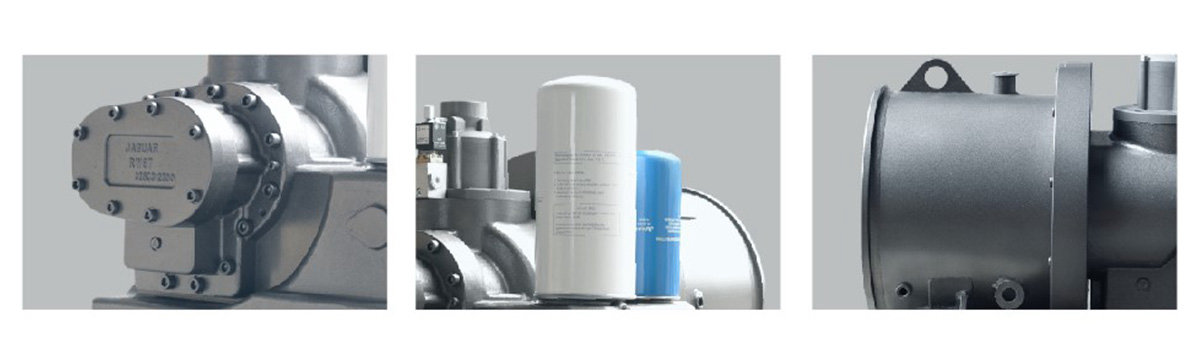 1.高精度的螺桿機頭: 采用捷豹的第三代不對稱螺桿轉(zhuǎn)子型線以及重載軸承選型,經(jīng)過反復實驗的高效率螺桿機頭,為用戶提供超大排氣量以及延長使用壽命。